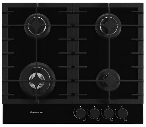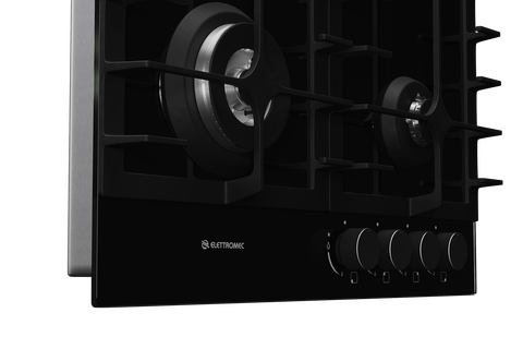 Cooktop a Gás 60 cm Elettromec Vetro Vidro Temperado Preto - 4 Queimadores Sabaf/Defendi com Dual Flame 4000W, Válvula de Segurança e Trempes Ferro Fundido