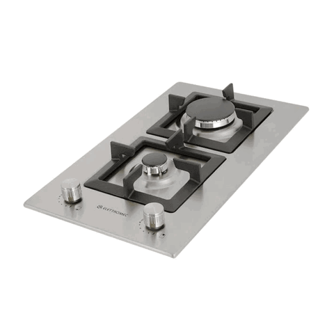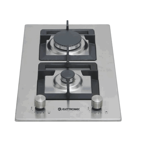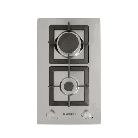 Fogão Dominó Elettromec Gás 30cm Inox 2 Queimadores - Acendimento Automático, Válvula Segurança e Trempes Ferro Fundido