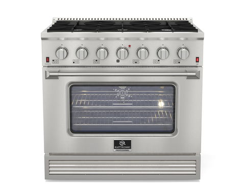 Fogão Professional Inox Elettromec 6 Queimadores Gás/Gás 36" 127V - Forno 127L com Grill a Gás, Acendimento Superautomático e Porta Vidro Triplo