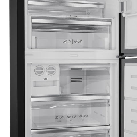 - Amplo espaço interno: permite o armazenamento de uma grande quantidade de alimentos, com acabamento em vidro preto e design minimalista que adiciona um toque de elegância à sua cozinha.